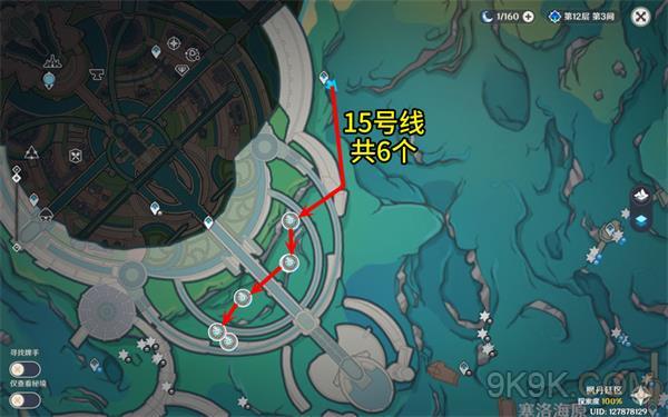 1.原神蒼晶螺位置采集路線如下:1~17號線,共104個。