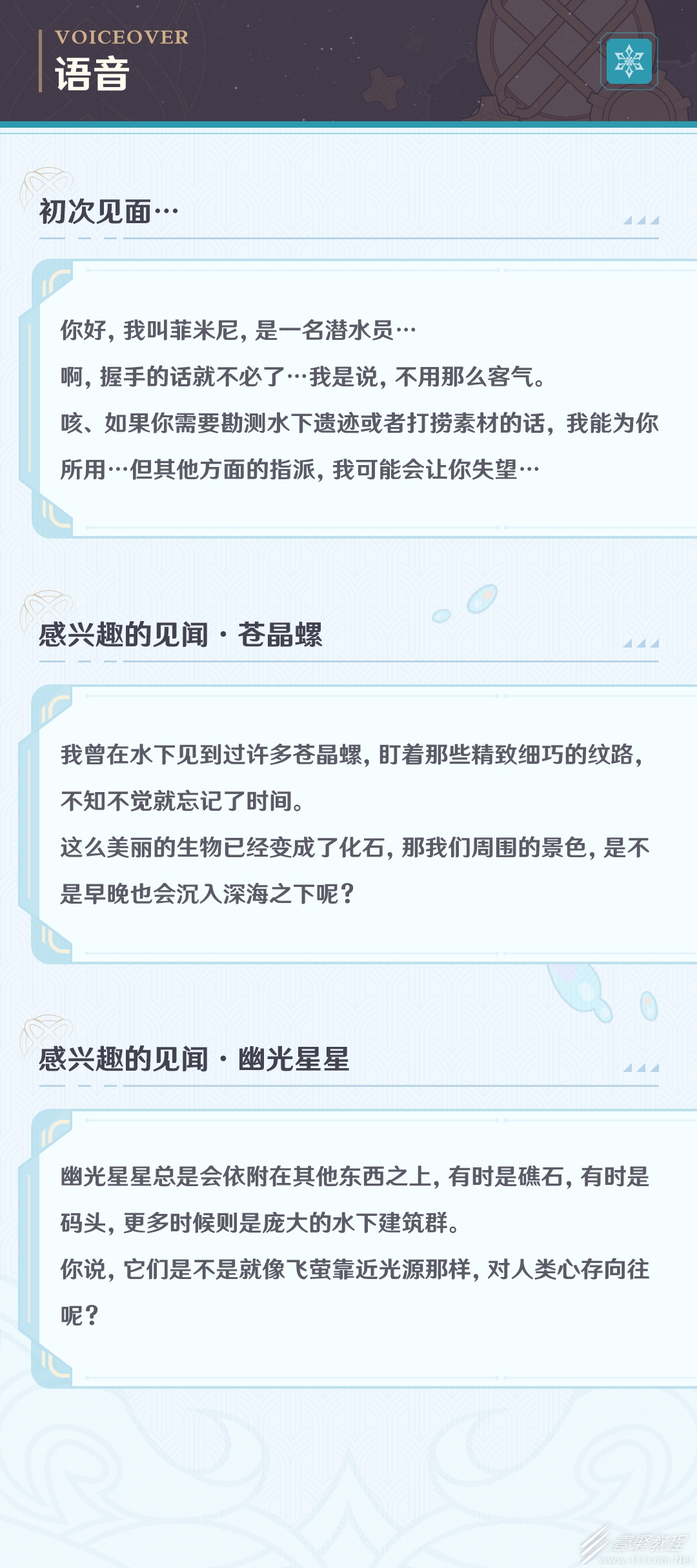 旅行者們好呀!今天爲大家介紹的角色是菲米尼,這位精于潛水的寡言少年,在如寒冰般拒人千裏的外表下,藏有一顆無瑕的純真之心,一起來了解他吧!