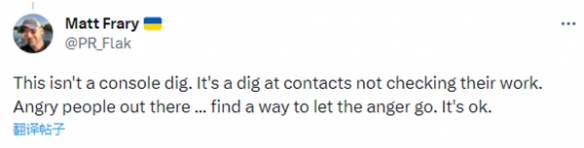 之後Frary還表示:”這不是安慰或嘲諷,而是對那些沒有檢查自己工作聯系人的批評。對于那些生氣的人,請找到放松心情的方法,一切都會沒問題的。“