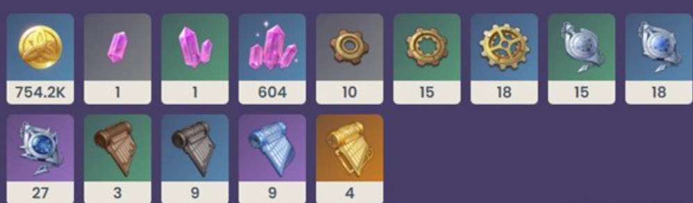 3、勘探鑽機武器的生升級材料如下圖所示: