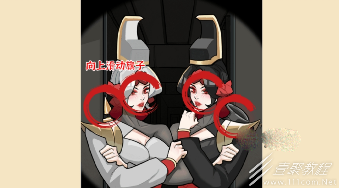 1、瘋狂爆梗王心理咨詢,首先點擊黑衣美女、白衣美女、鐵鏈,向上滑動旗子找到旗子,選擇不願意