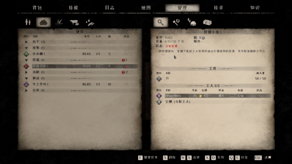 1、小刀的耐久不夠,在狩獵小屋中如果狩獵工具沒有及時更換那麽獵人們也是不會工作的。