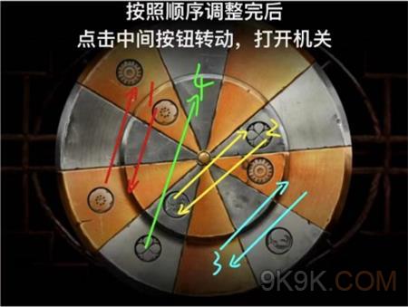 2.與戲台上三人對話獲得線索,上樓把木塊放進走廊中間的櫃子上,根據線索打開櫃子,獲得玉琴撥片,用撥片打開走廊左邊的房間,完成劇情。