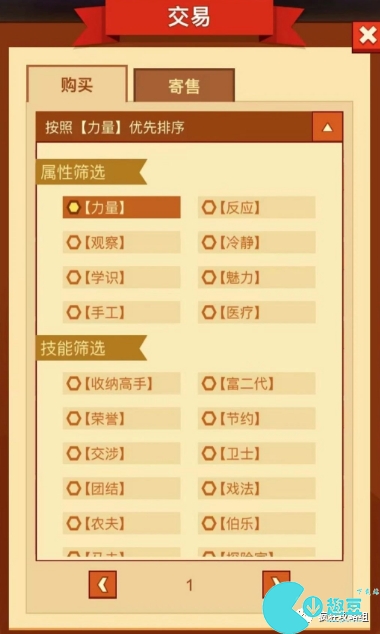用于購買或寄售助手,你無法購買自己作爲助手,寄售助手需要先將該助手解綁。可根據屬性、技能篩選自己需要的助手。