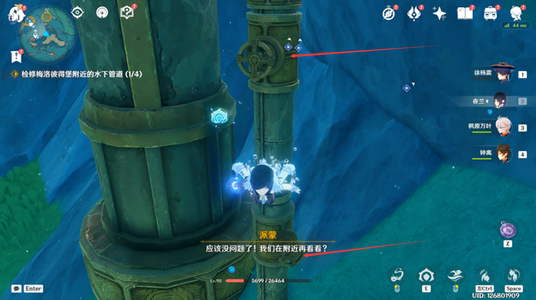 8,第四處,在管道下方吸收獵刀鳐的能力,切割海草後獲取手輪,然後將手輪安裝在管道上,轉動2次即可。
