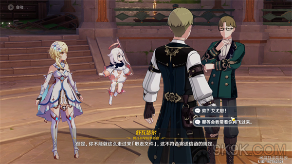 3.根據對話,艾尤恩需要去楓丹科學院附近留影,拜托旅行者作爲向導。