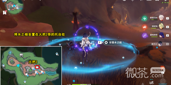 3、之後需去往火把2的位置,到達之後將水之核放置在火把旁的托台邊即可完成此任務。