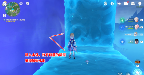 1、玩家首先前往冷凝部件在的水體位置,將水泡打掉。