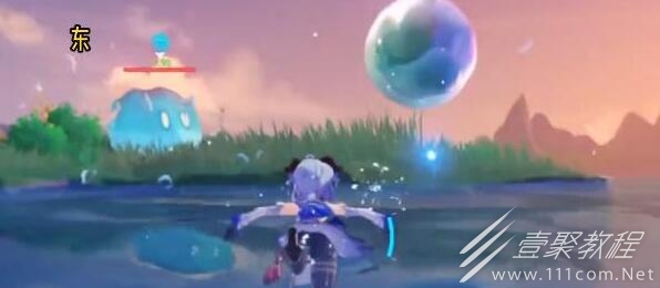 4、到達另一個水層上面,摧毀水泡解鎖其中入口,打敗平台上的史萊姆接著跳到對面的水層。