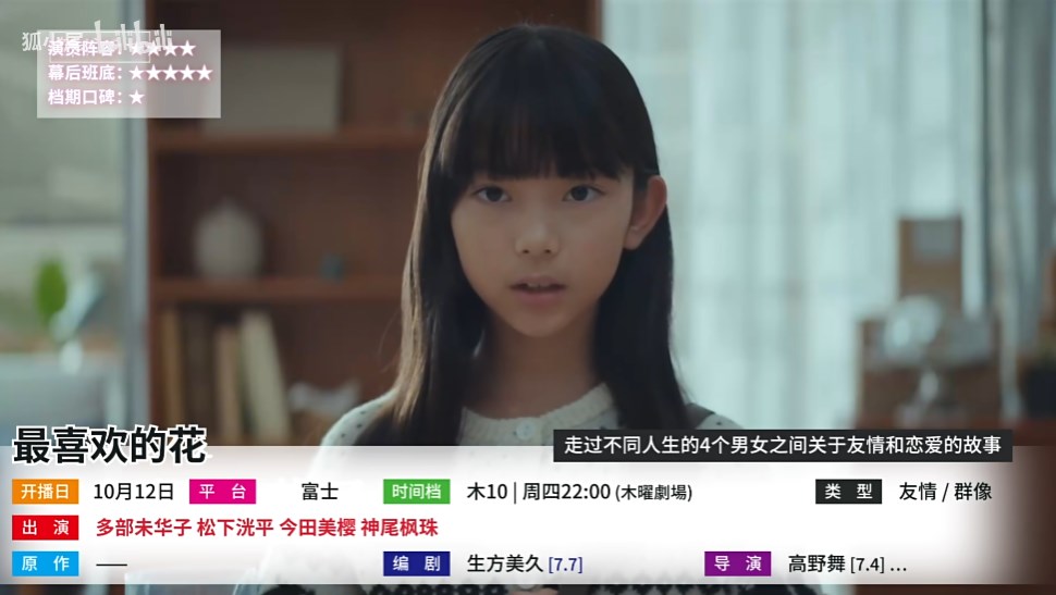 本篇將爲大家帶來《最喜歡的花》日劇什麽時候播出的內容,《最喜歡的花》是富士台出品的電視劇,由高野舞執導,生方美久擔任編劇,多部未華子、松下洸平、神尾楓珠等人主演,于2023年10月開播。感興趣的小夥伴們一起來看看吧,希望能夠幫助到大家。