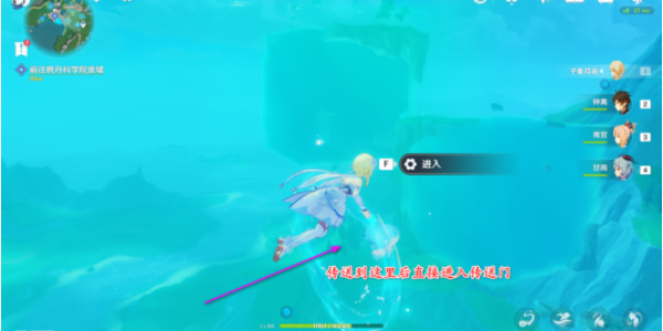 4、傳送到下一個水立方後,直接進入傳送門;接著到下一個水立方上岸,飛到前面水立方裏面;