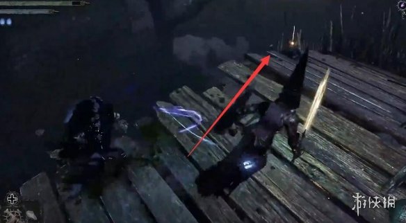 3、一直前進直至到達廢棄建築,通過梯子上到建築頂部可看見黃色閃光點。