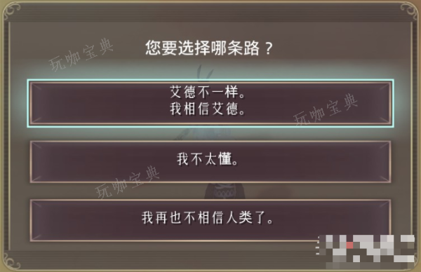 如果回頭想看白線的劇情,可以讀取上面說的存檔後在這裏選擇“艾德不一樣,我相信人類”。