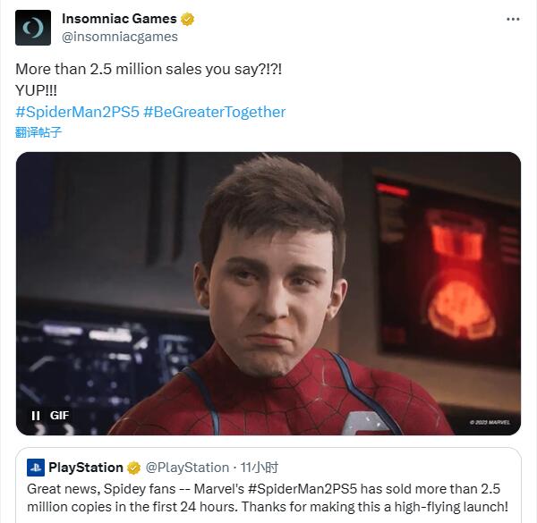 本篇將爲大家帶來《漫威蜘蛛俠2》PS5首日銷量破250萬的內容,失眠組Insomniac Games及PlayStation官方宣布,《漫威蜘蛛俠2》首日銷量超過250萬份,同時也是PS第一方遊戲中賣的最快的,成績非常優秀!感興趣的小夥伴們一起來看看吧,希望能夠幫助到大家。