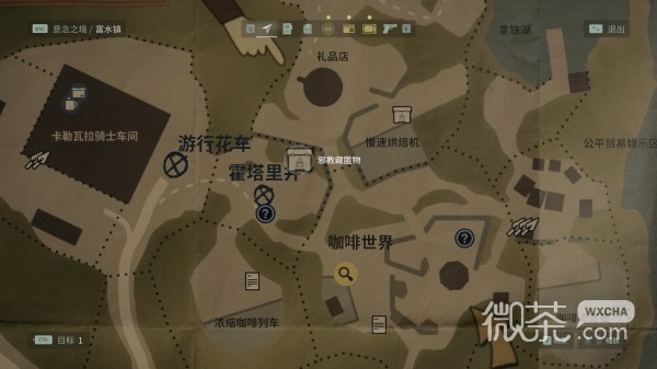 在霍塔裏井後面的一棵樹旁邊,需要用咖啡世界藏匿物鑰匙才能開啓。往東走到巨大的圓形雕像前,鑰匙就在雕像後面的地上。