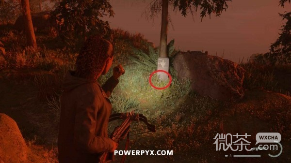 前往護林員站外面的煙囪,旁邊的地上可以找到鑰匙,拿到鑰匙後前往護林員站西邊山上即可打開藏匿物。
