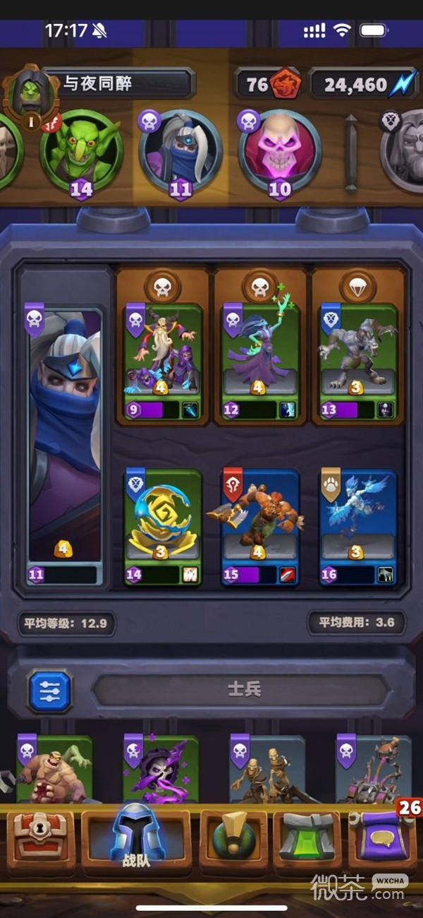 這個氪度的玩家可以在2個月時間裏將所有卡升級藍色的同時,還可以定向重點購買3-5張卡來沖紫色,會頻繁的用到上文商店部分所推薦的T字刷新法。這樣可以在1-2個月時間內打造出均等在23-25級的隊伍,這個等級可以輕松通關22級地下城解鎖全英雄金框,同時也可以攻克絕大部分英雄難度關卡進一步獲取大量一次性經驗書、金幣獎勵,達到140-150徽章,至此除奧妮克希亞以外就通關所有pve內容了。下圖是本人玩了2個月的大號的陣容,大概就是這一檔氪度,商店僅直接購買到一張紫卡骷髅小隊,其余幾張紫卡都是在全藍過程中逐漸升級的,英雄黑手紫色其他全藍,收藏度目前41,供大家參考一下。因爲碰到了當前的經驗軟上限bug(全卡達到20級以上後目前無法再獲取經驗書),暫停了英雄難度戰役攻打進度,正常這個陣容打到140-150徽章之間是沒問題的。