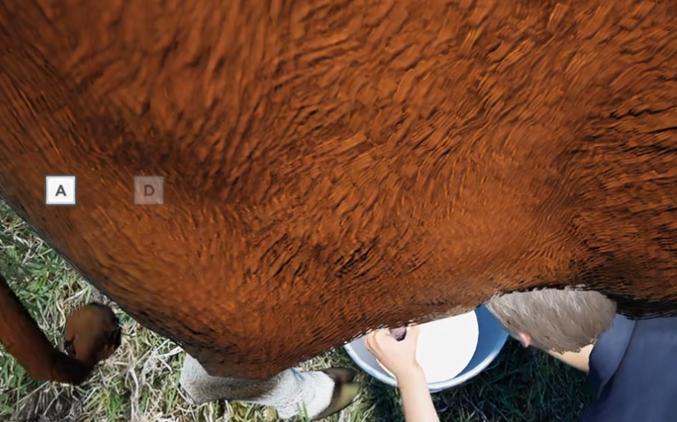 3、根據提示,有節奏地按A和D兩個鍵,這樣就可以輕松擠出牛奶,然後就可以用牛奶來制作奶酪了。