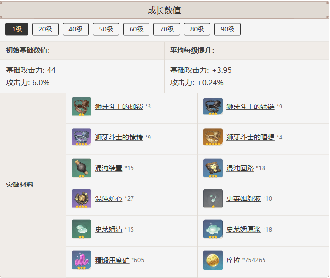 成長數值一覽