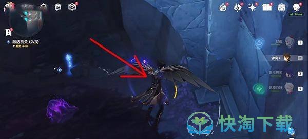 3、之後繼續向下飛可以看到一個風場,借助風場繼續起飛;