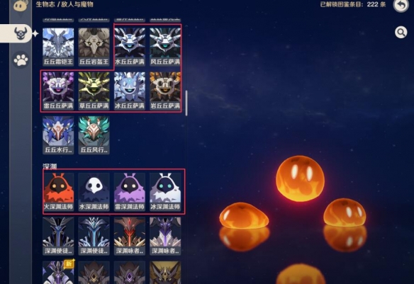 從生物志中可以看到如下敵人也是可以拍攝的:岩盾、冰盾丘丘人;水、風、雷、草、冰、岩丘丘薩滿;火:水、雷、冰深淵法師。