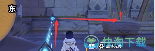 4、拿到門後的三角光錐,用它在元件組件上旋轉,打開對面的門。