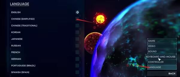 4.在語言選項中,選擇“CHINESE (SIMPLIFIED)”(中文簡體)。