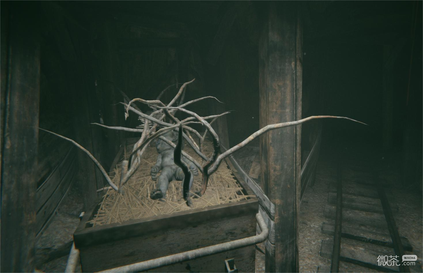 在礦道躲掉小白人的堵殺,經過98號錄像皮膚牆紙後的分叉礦道會下來一輛載著死嬰的礦車,拍攝它。就是99號錄像