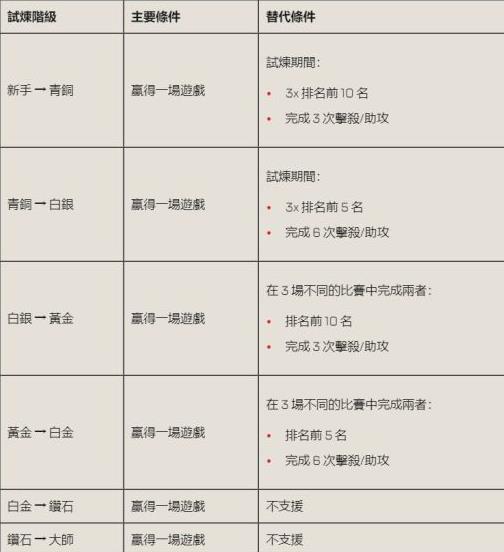 2、在特定比賽的場次限制內完成試煉條件(可以是贏得遊戲或是完成替代條件)。