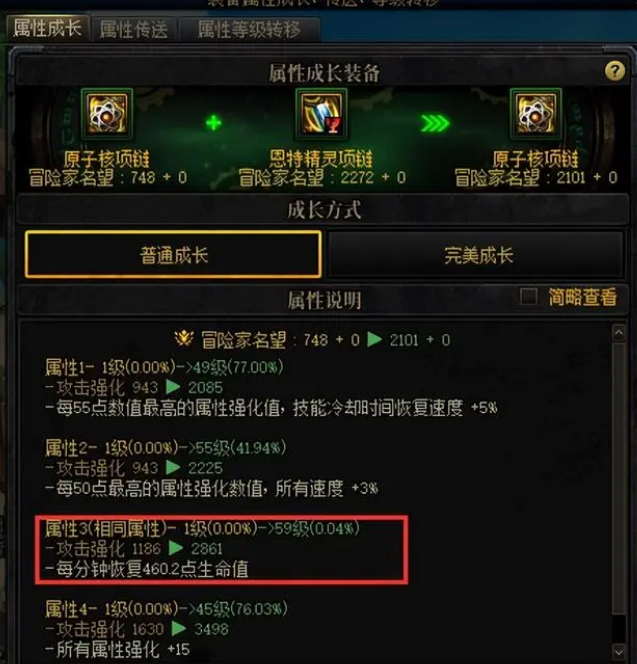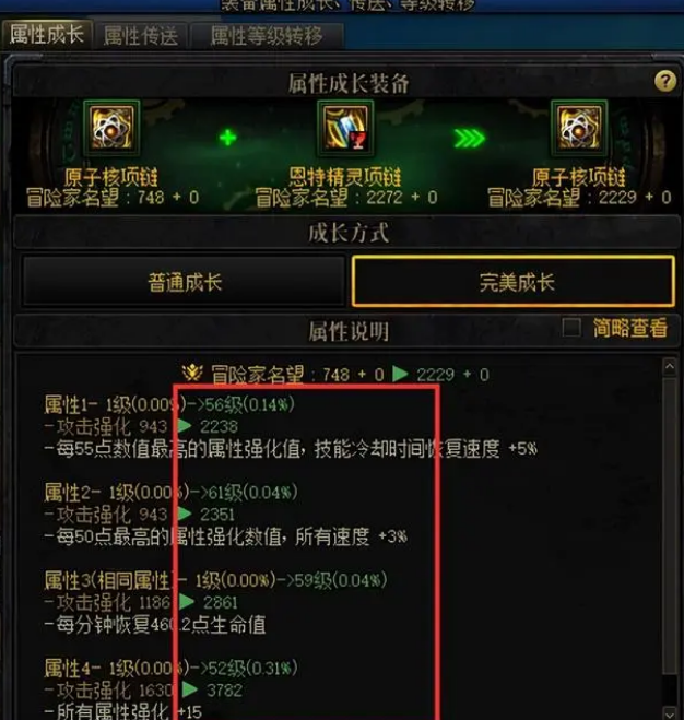 3、普通成長會將一部分的詞條經驗折損後再給被餵養裝備上,而完美成長可以將材料裝備的所有經驗都給被餵養裝備。