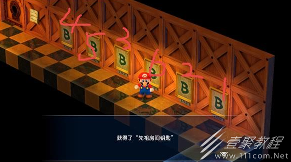 2. 到武奇塔的三樓,玩家會看到全是B的畫像,按照下圖數字順序打開,就可以獲得先祖房間鑰匙。