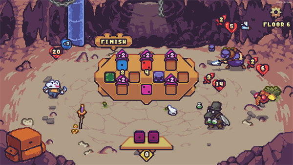 2、骰子地牢是牌組構建類肉鴿遊戲,畫風爲像素風。