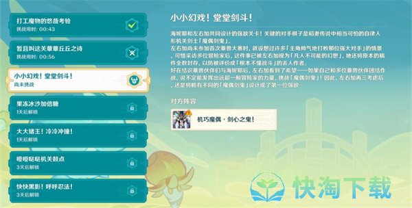 在原神這次也是開放新的活動,其這次的活動玩家又可以見到咚咚小圓帽了,很多小夥伴不知道原神小小幻戲堂堂劍鬥怎麽過,第三關玩家需要擊敗機巧魔偶·劍心之鬼,接下來帶來了關于《原神》小小幻戲堂堂劍鬥策略,感興趣的小夥伴快來看看吧。