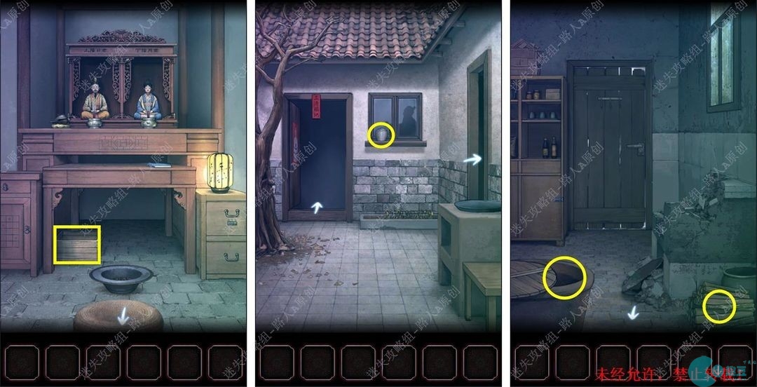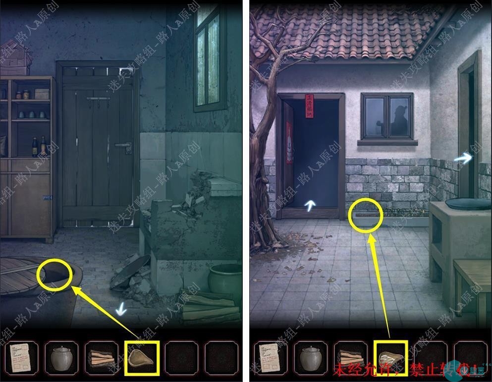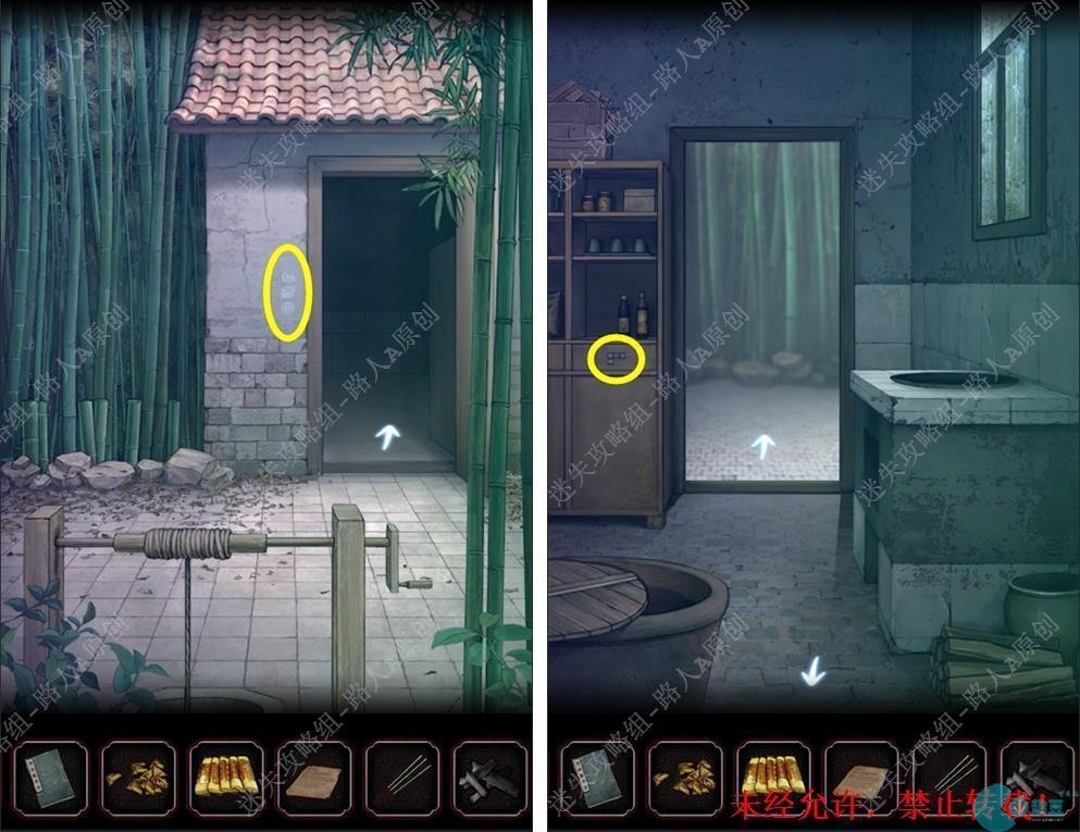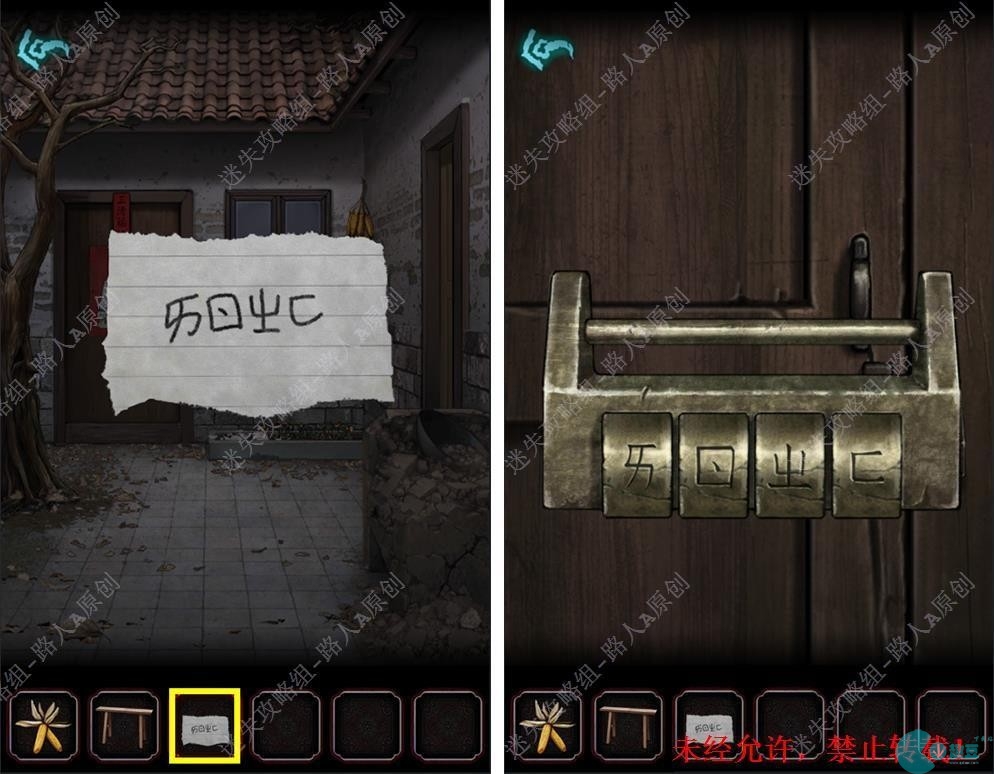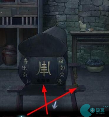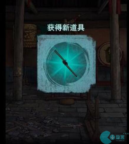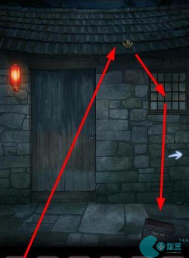 2、然後使用長柄耙將屋頂的紙鶴拿下,查看能夠得到密碼,將地下的木盒打開獲得鑰匙。