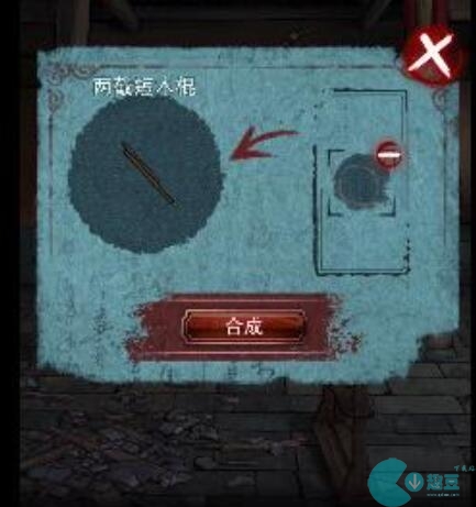 1、劇情過後來到大門前,將地下的木棍和齒耙拿上然後合起來可以合成長柄耙。