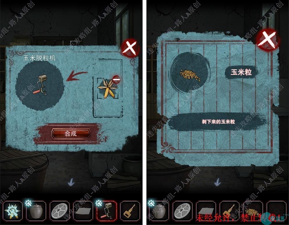 4、組成道具【脫粒機】和【玉米】,得到【玉米粒】。