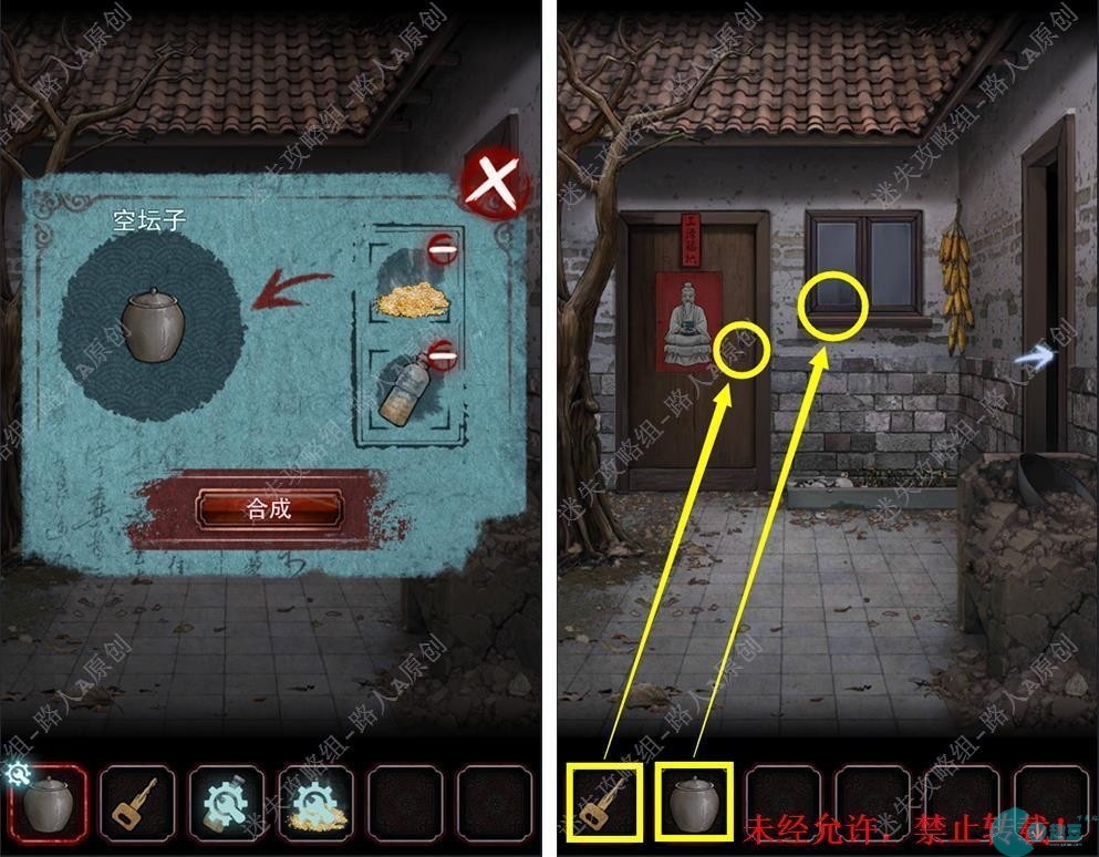 8、組成道具【空壇子】、【玉米粒】、【酵母】,將【玉米酒壇子】放進陽台,用【鎖匙】開門。