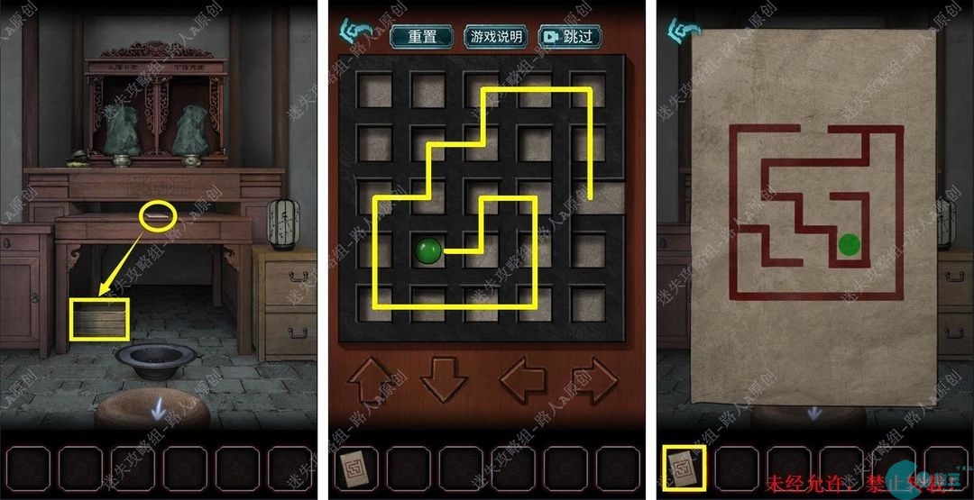 18、然後將兩個半個鑲嵌物以及白球放到地板機關完成裏面的小遊戲即可。