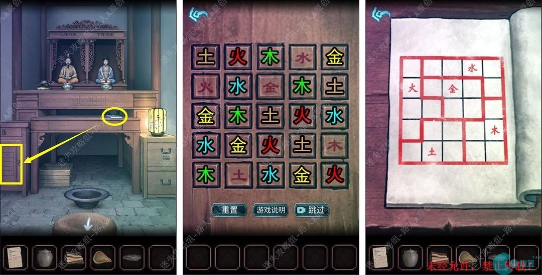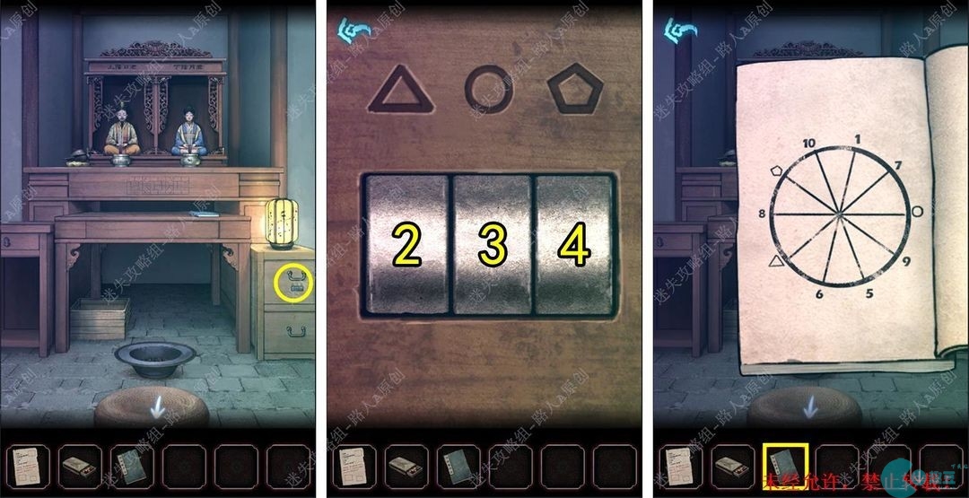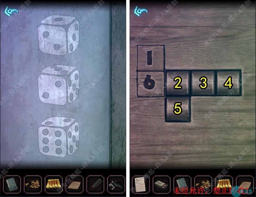 22、依據牆壁上骰子圖案線索(骰子的進行面便是密碼),打開木櫃得到【銅香爐】。