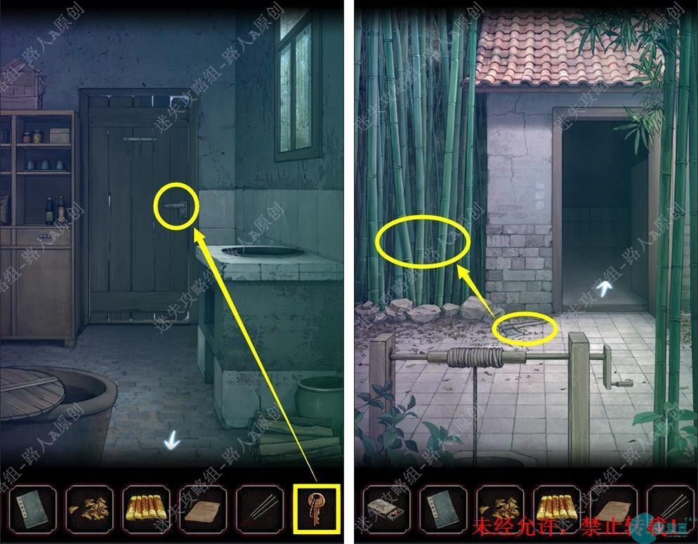 20、用【鎖匙】打開廚房側門,拾取【斧子】,用【斧子】砍竹子。
