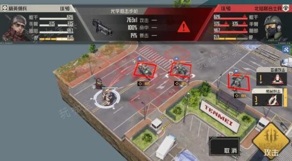 移動到圖中位置,攻擊另一面機槍機兵的軀幹,敵方觸發不屈會在敵人的回合原地爆炸。