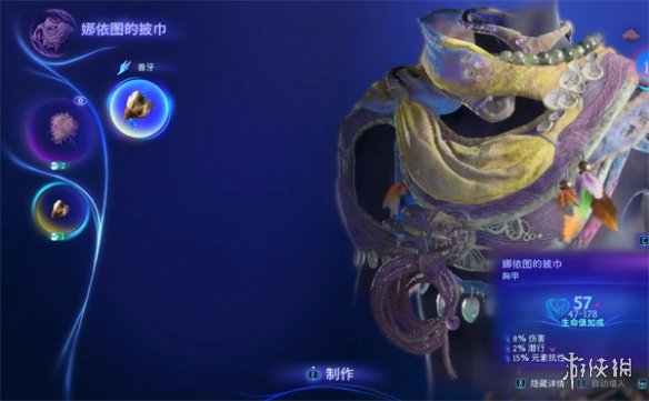13、然後用旁邊的制作台選擇制作娜依圖的披巾,選用血淤苔和相應的獸牙點擊制作。