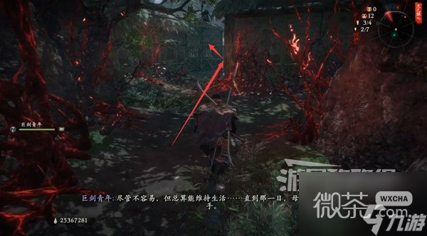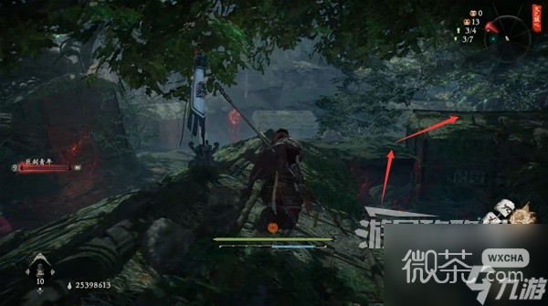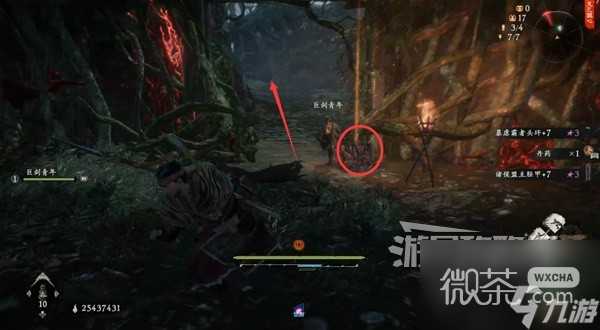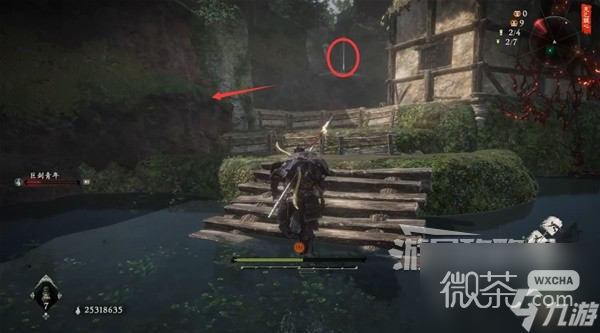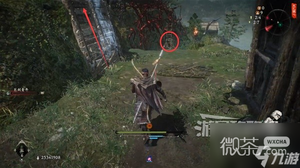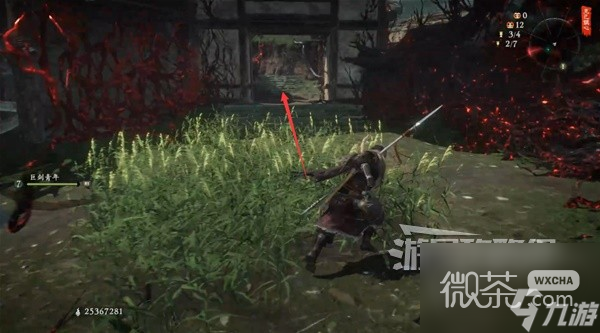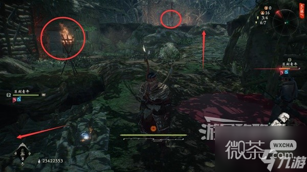 從稻草人旁的路上去插【旌旗】。然後先不去探索上層,先回到稻草人這邊。