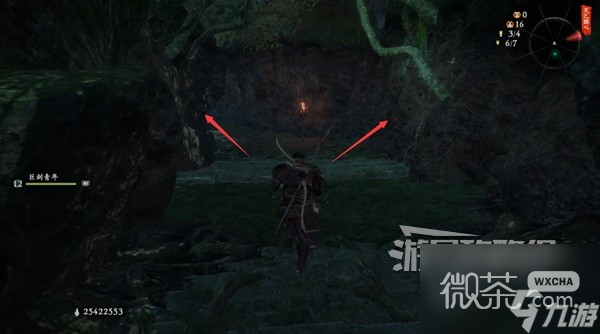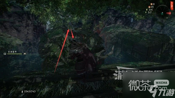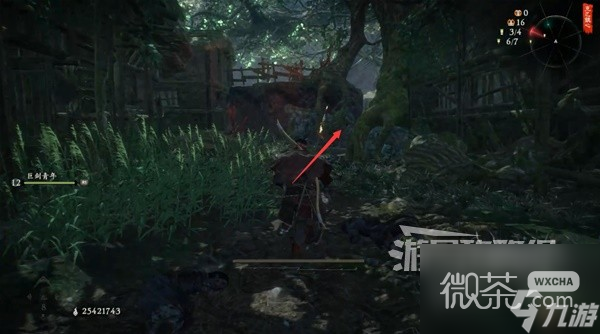 左拐有條隱蔽的小路,走到頭撿到【龍脈精華】。