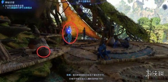 2.到家園樹頂部找艾圖娃,發現是她父親(族長)在那,到家園樹外找到艾圖娃。
