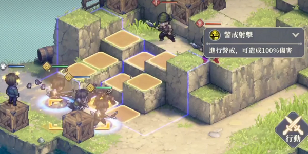 3、第三回合,弓手移動到圖示位置,然後朝右面使用警戒射擊。