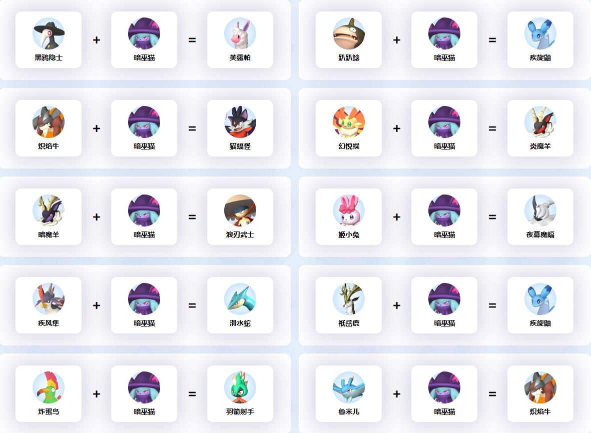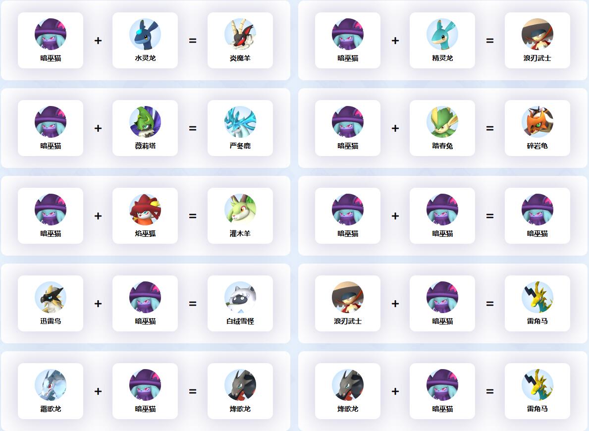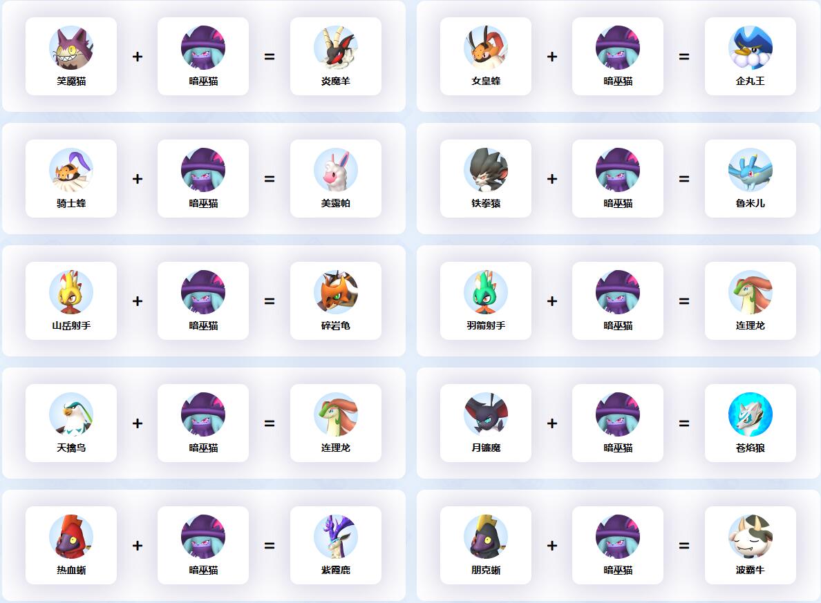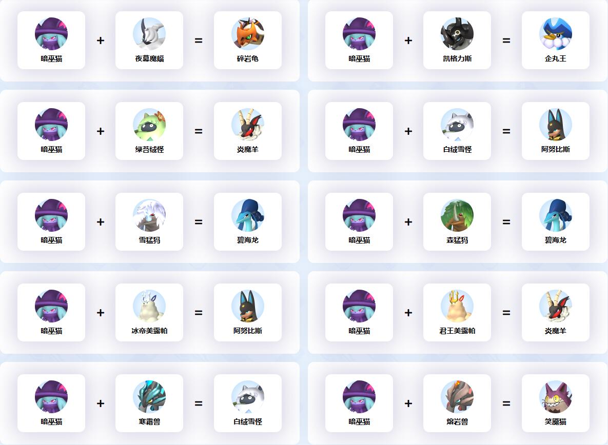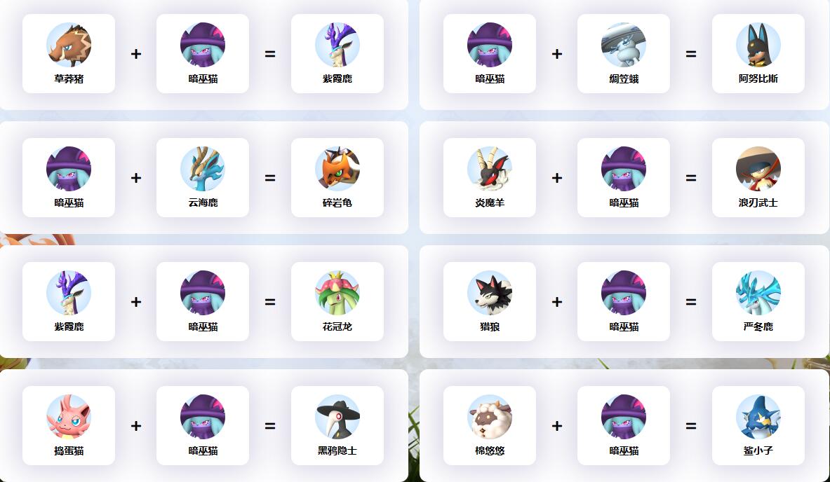 幻獸帕魯中暗巫貓參與的配種公式一覽