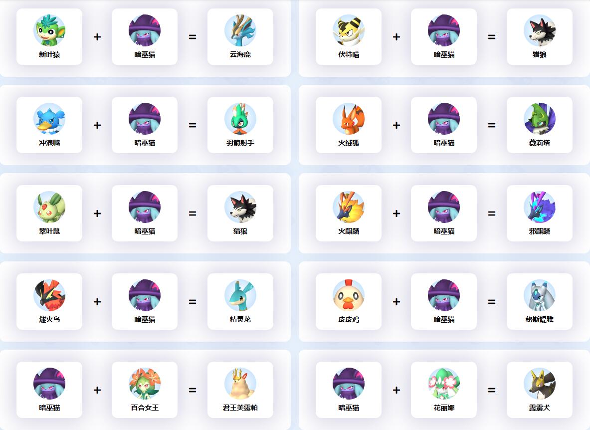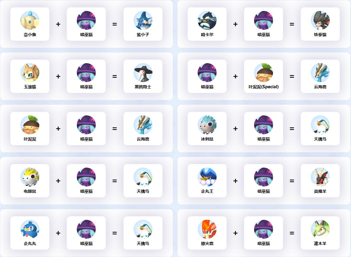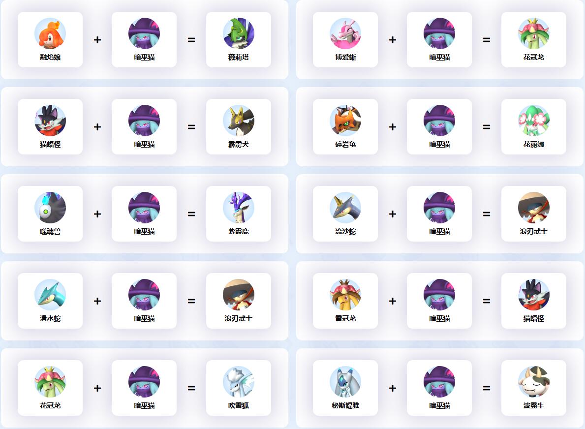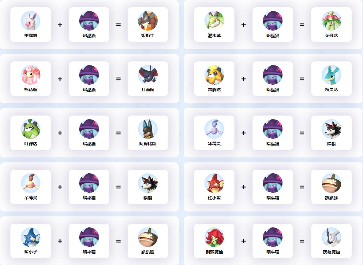 幻獸帕魯中暗巫貓參與的配種公式一覽