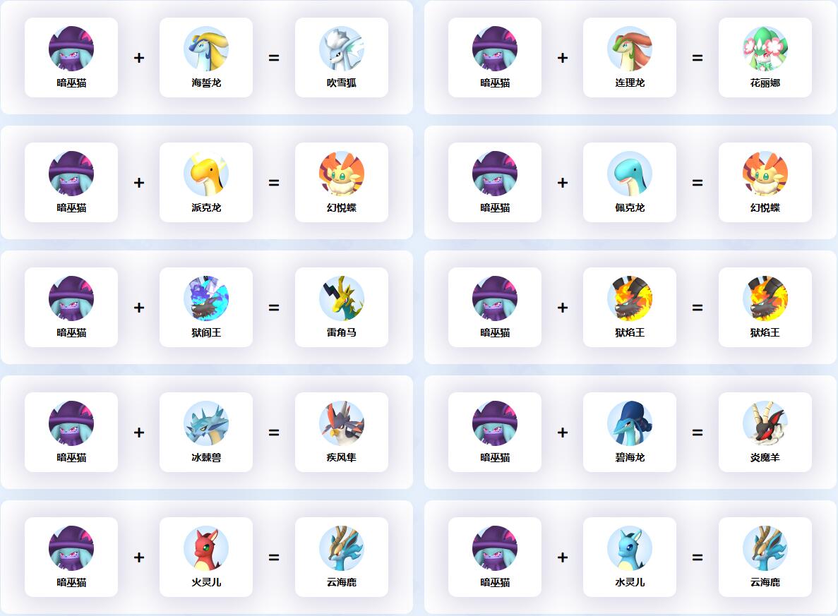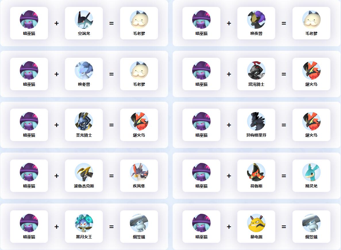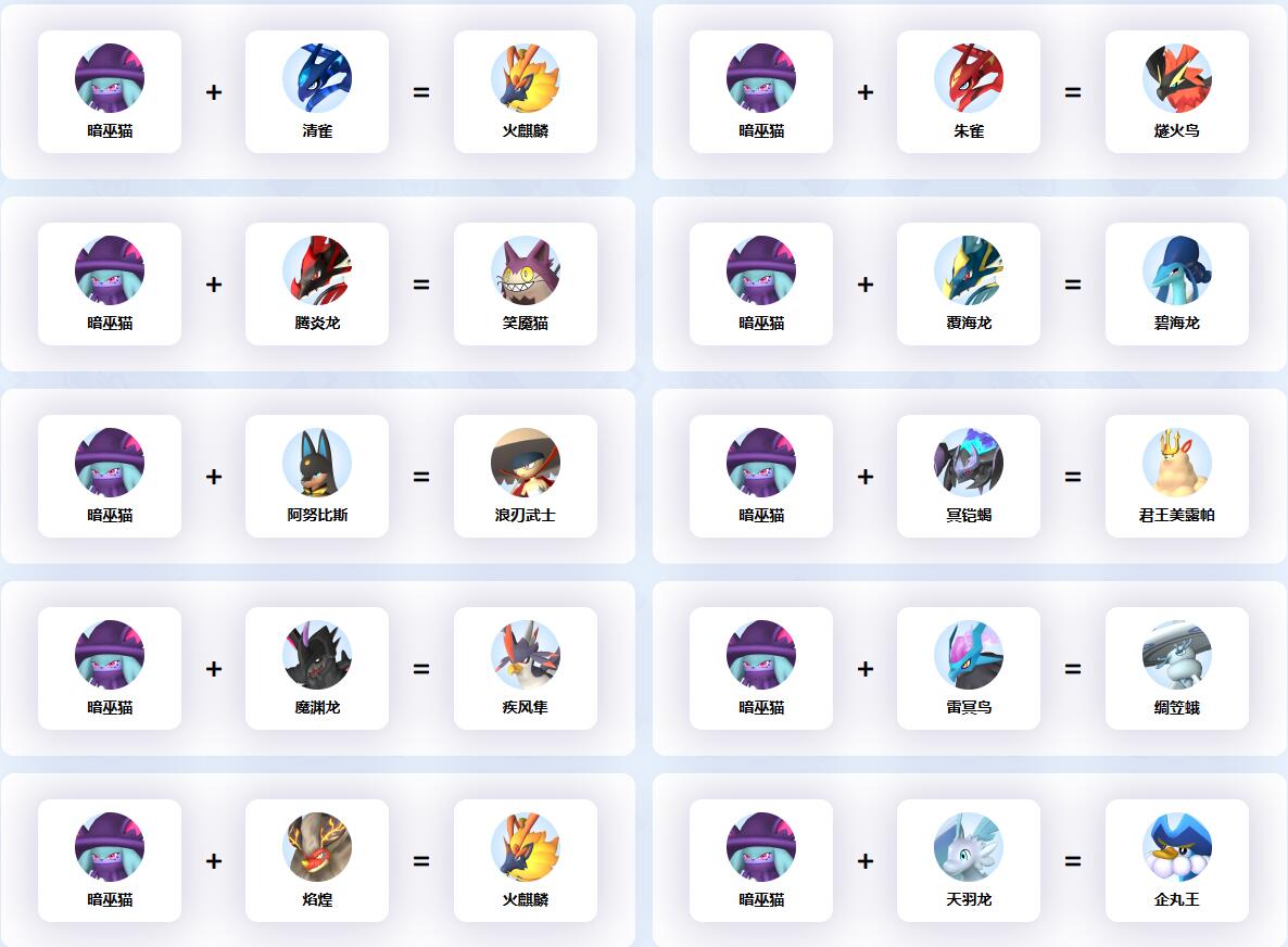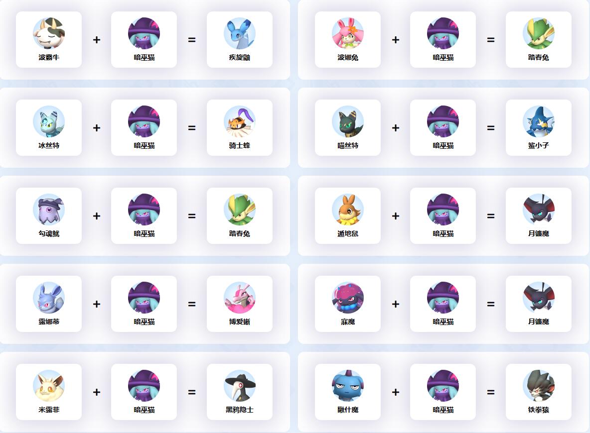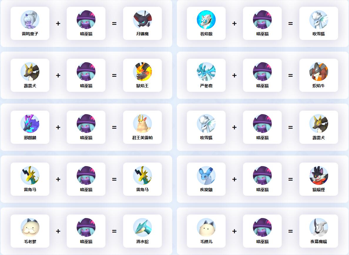 幻獸帕魯中暗巫貓參與的配種公式一覽