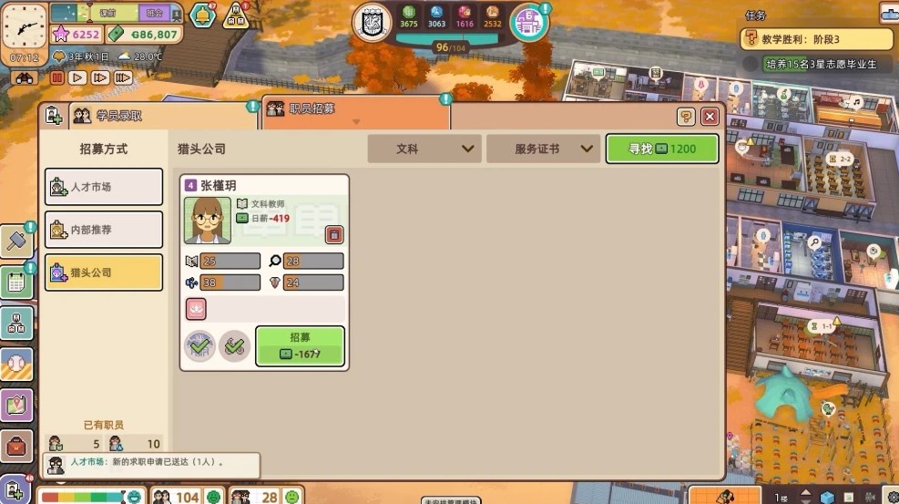 3、管理技能等級太低管不住自己的部門,玩家應當提高教師的管理等級。
